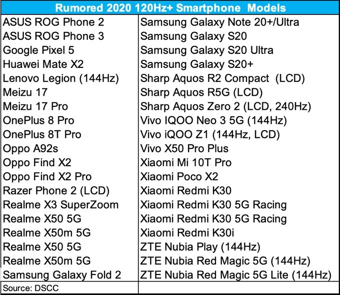 Menaxheri ka publikuar një listë të telefonave inteligjentë që tashmë janë në treg ose mbërrijnë në vitin 2020 që do të përfitojnë nga aftesia të 120Hz ose më të lartë, dhe iPhone 12 mungon.