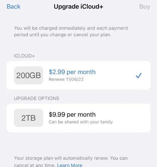 Përveç shërbimit falas iCloud që përfshihet me çdo iPhone dhe iPad, Apple ofron tre nivele çmimesh për të zgjedhur. Dallimi i vetëm midis secilit nivel është sasia e ruajtjes dhe sa kamera mbështeten me HomeKit Secure Video: