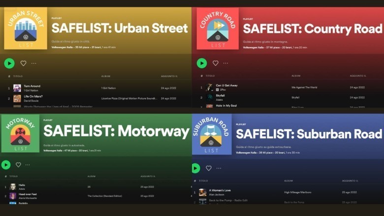 Katër listat, të cilat janë në kanalin Spotify të Volksëagen Italia, përshtaten me lloje të ndryshme rrugësh, duke diktuar ritmin që i përshtatet më së miri ritmeve tona dhe duke kalibruar shpejtësinë tonë të drejtimit në përputhje me rrethanat.